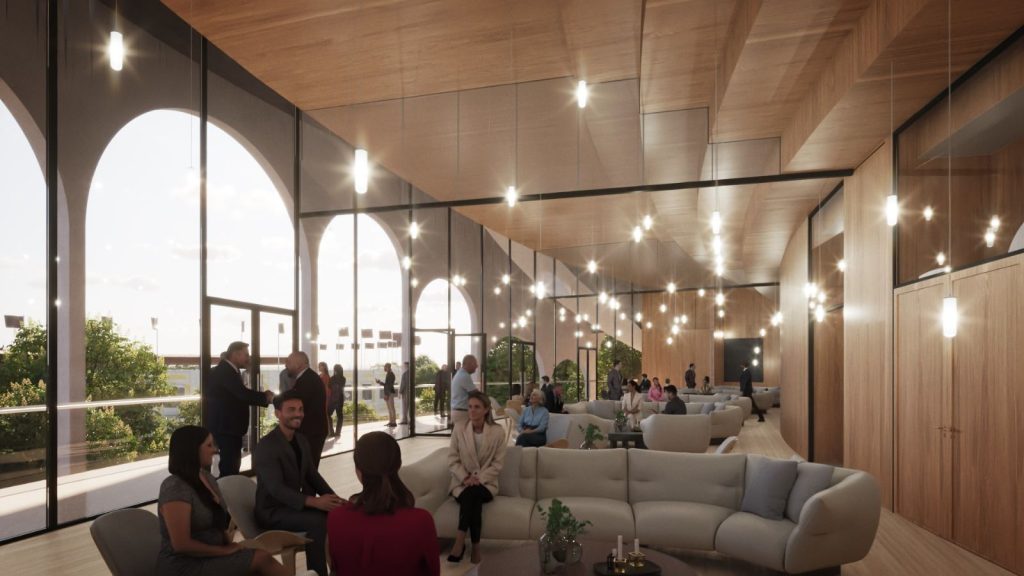 - Une entrée principale entièrement transparente pour créer un effet de continuité avec l’espace public