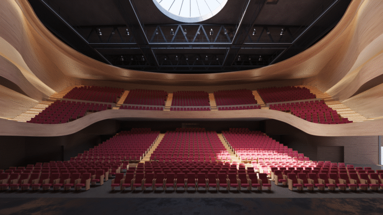 Cette conception architecturale répond à une volonté claire : « le spectacle commencera dès l’extérieur », comme l’indique la présentation du projet.