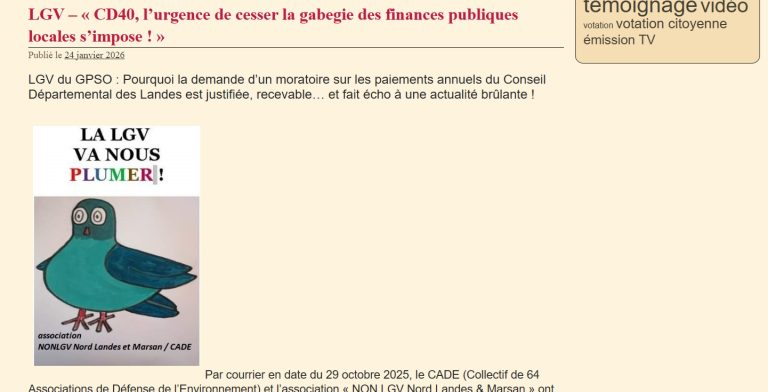 LGV – GPSO : le CADE relance son appel à un moratoire sur le financement